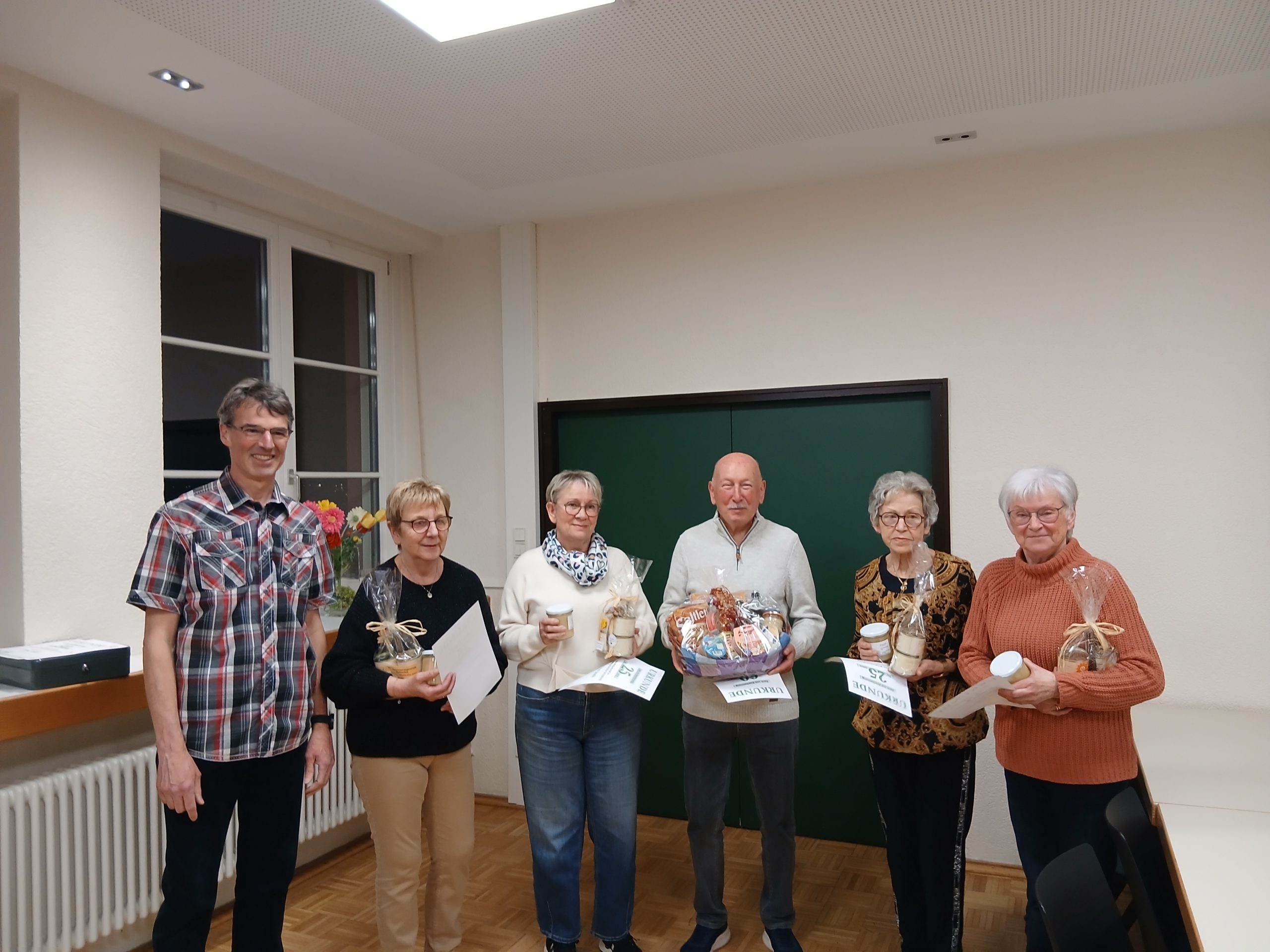 Der erste Vorsitzende Mario Iltisberger begrüßte 33 Mitglieder im Pfarrheim Dietkirchen. Nach dem Gedenken an die Verstorbenen des Vereins gab es einen Rückblick auf das abgelaufene Jahr 2025. So berichtete der Vorsitzende über Aktionen wie Weihnachtsbeleuchtung, Vermietung Grillplatz, Zurverfügungstellung öffentlicher WCs und weiteres. Einer der Höhepunkte war das Anlagenfest im August. Hier fand ein Gottesdienst statt, der Lahnpavillon wurde eingeweiht und viele Gäste aus Nah und Fern kamen zum Verweilen in die Anlage. Maria Eufinger, Edeltraut Jeuck und Karin Albert wurden mit einem Blumenstrauß überrascht für die Jahrzehntelange Mithilfe beim Anlagenfest. Ein zweiter Höhepunkt in 2025 war zweifellos der erstmalig ausgerichtete Krippenweg. Über 100 Interessierte kamen allein zur Eröffnung, viele weitere hunderte im Verlaufe der nächsten vier Wochen, um die knapp vierzig Stationen zu bestaunen. Der 2. Vorsitzende Horst Schmitt berichtete sodann über die umfangreichen Arbeiten bis zur Fertigstellung des Lahnpavillons. Keramikplatten verlegen, Anbau fertigstellen, Elektrik und vieles mehr. Ein schöner Tagesordnungspunkt bei der JHV sind auch immer die Ehrungen für langjährige Mitgliedschaft. Tanja Schmidt präsentierte anschließend den Kassenbericht und übergab im Laufe des Abends die Kasse an den neuen Kassierer Magnus Heberling.